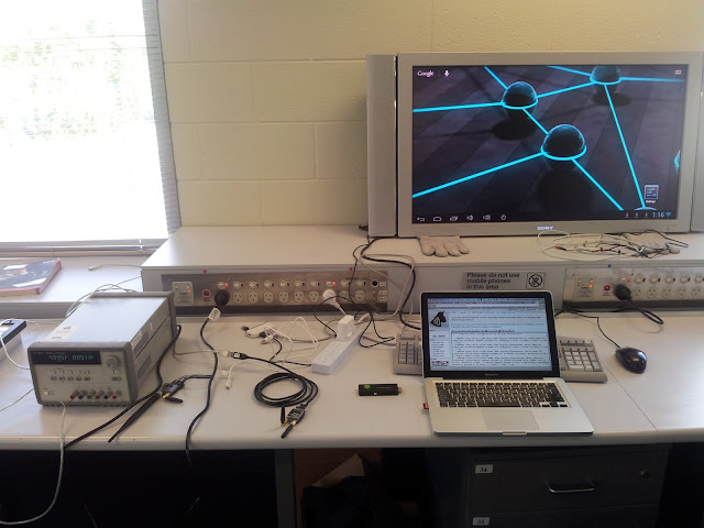 To know just how small we can make the battery, we need to know what our power budget is, and this is what I set about determining today. You can see the test rig in the picture. Basically I measured the current consumed by the USB lead that I was using to power everything, and varied what I plugged in the end.